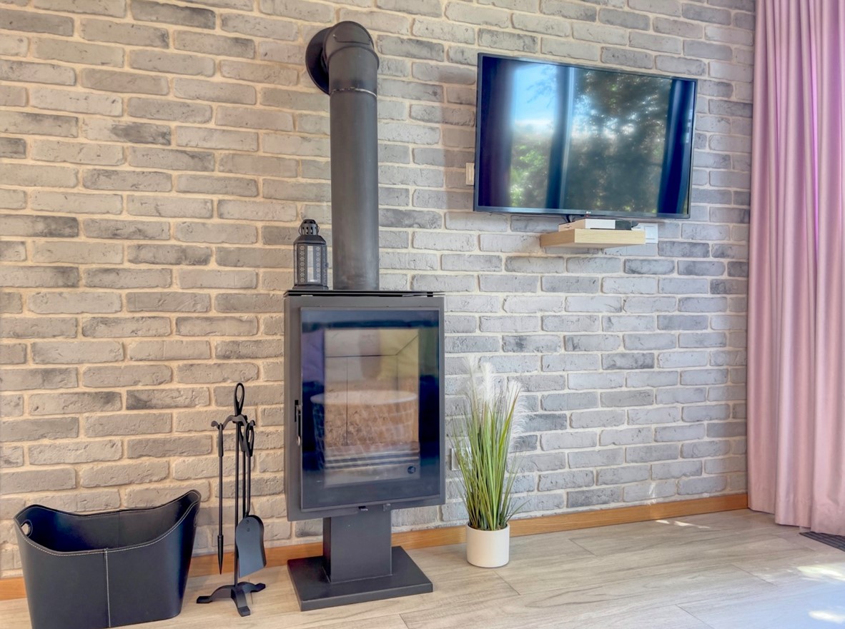 Salon, z wygodnymi meblami i dostępem do telewizora, to doskonałe miejsce na relaks. Centralnym punktem jest kominek, który wprowadza przyjemny nastrój i zapewnia ciepło w chłodniejsze dni, tworząc niezapomnianą atmosferę.